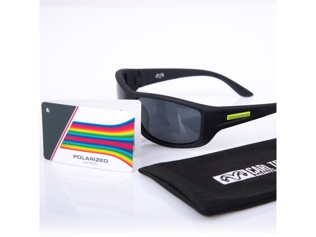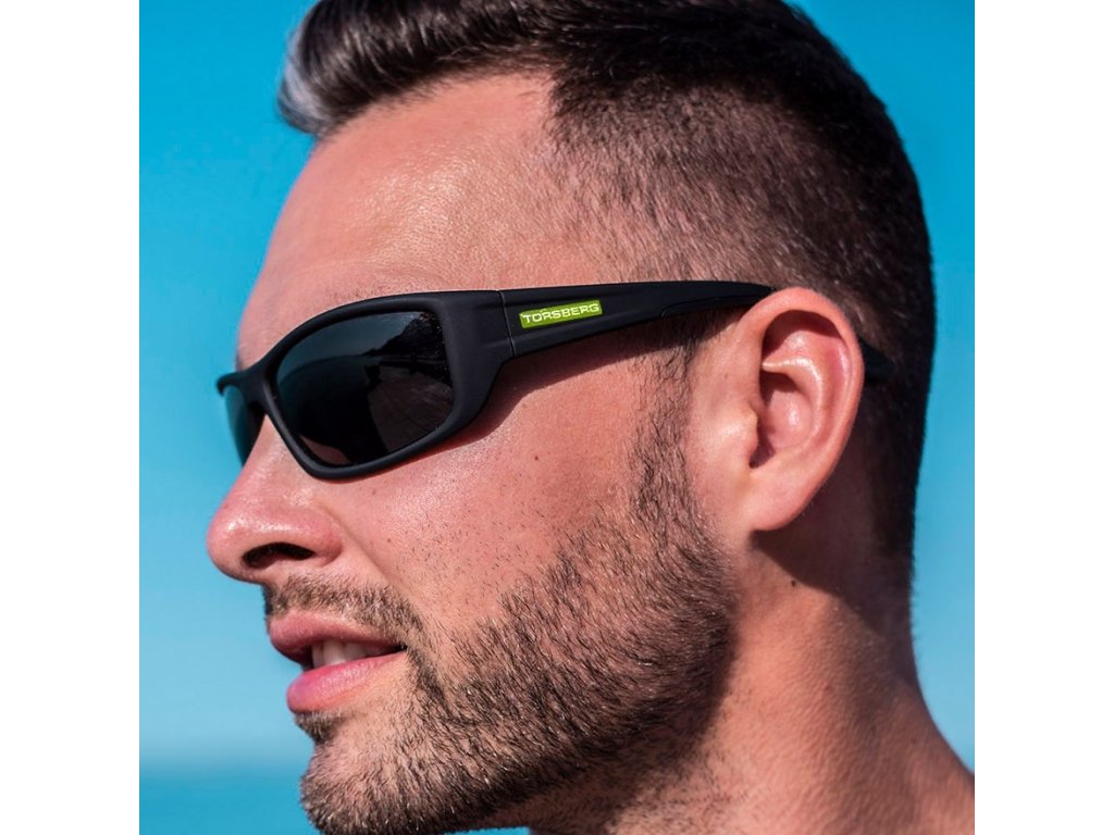 Sportovní sluneční brýle CARL TORSBERG® s rámečkem vyrobeným z černého matného plastu vysoké hustoty. Polarizovaná skla filtrují 99% odraženého světla bez optického zkreslení.